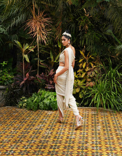 One Shoulder Pearl Blouse with Dhoti Saree